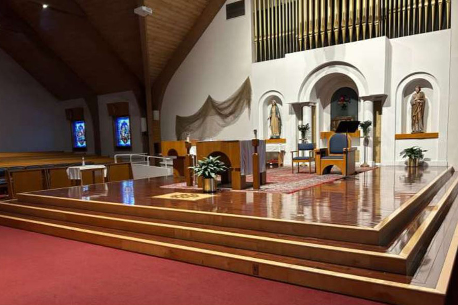 Over the last year or more, I have observed some older Eucharistic Ministers and Lectors, as well as our weekend senior assistant, Fr. Jim Ronan having difficulty going up and down the altar sanctuary stairs without something to hold onto. With the unanimous support of the members of our Parish Pastoral Council and Parish Finance Council, and the approval of Archbishop Henning, we are in the process of having constructed and installed 4 custom made handrails for our rather expansive altar sanctuary.